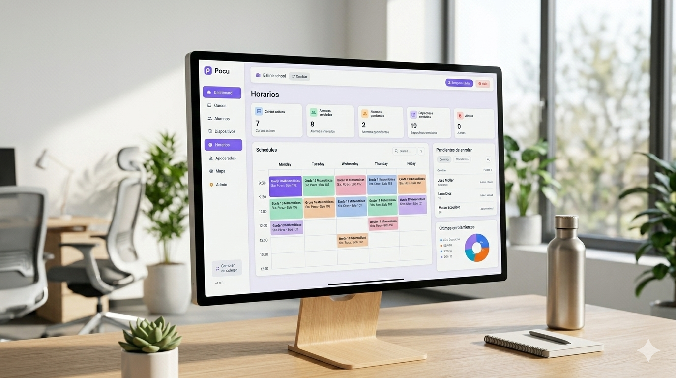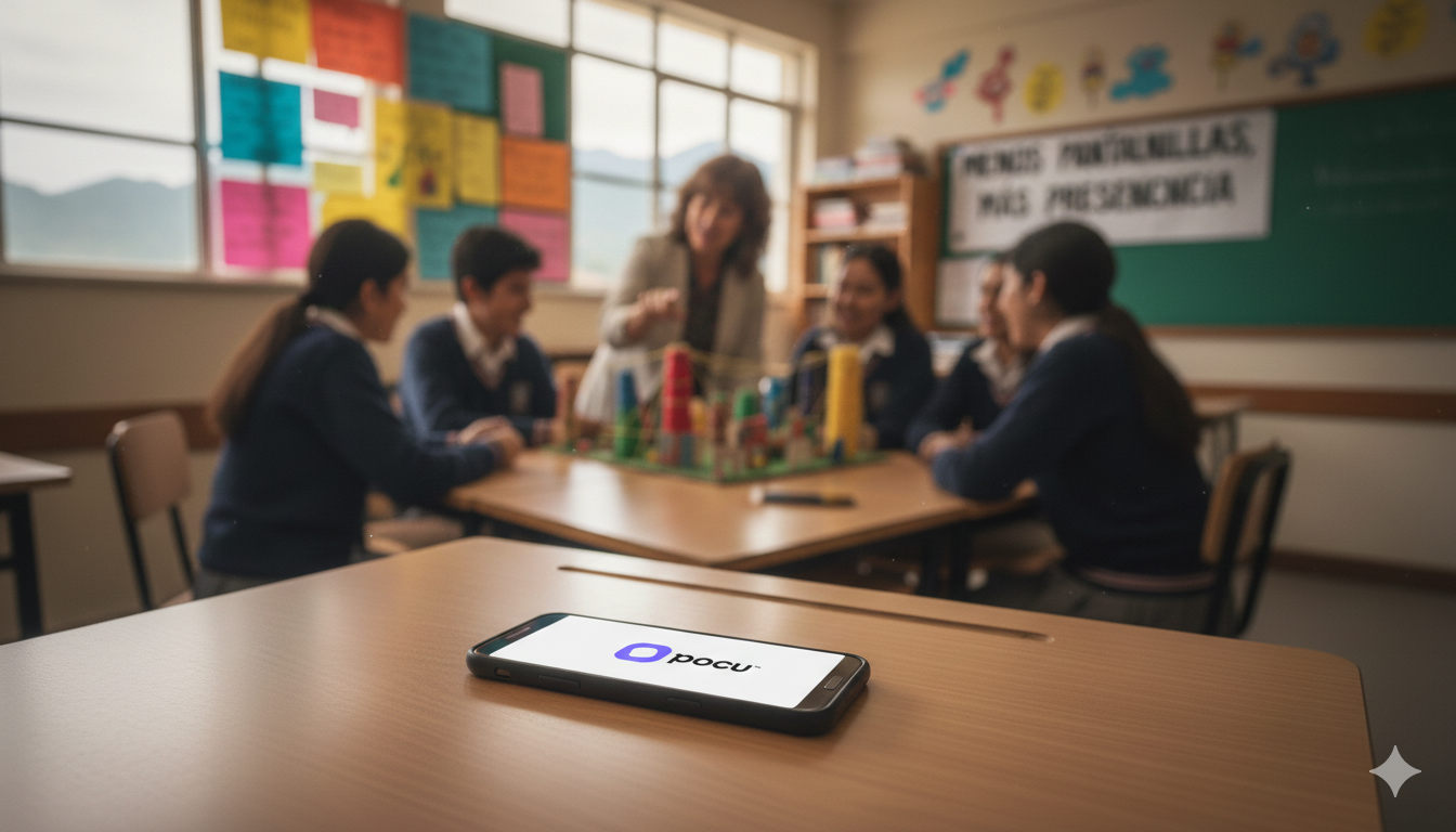 POCU es un software que sincroniza los celulares de los alumnos con el horario del colegio. Cuando suena el timbre, las redes sociales y juegos entran en pausa. En los recreos y al salir de clase, todo vuelve a la normalidad automáticamente.